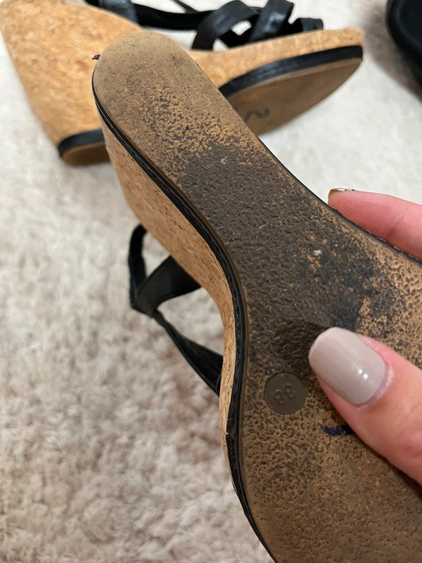 Taille : 38, hauteur du talon compensé 10cm.