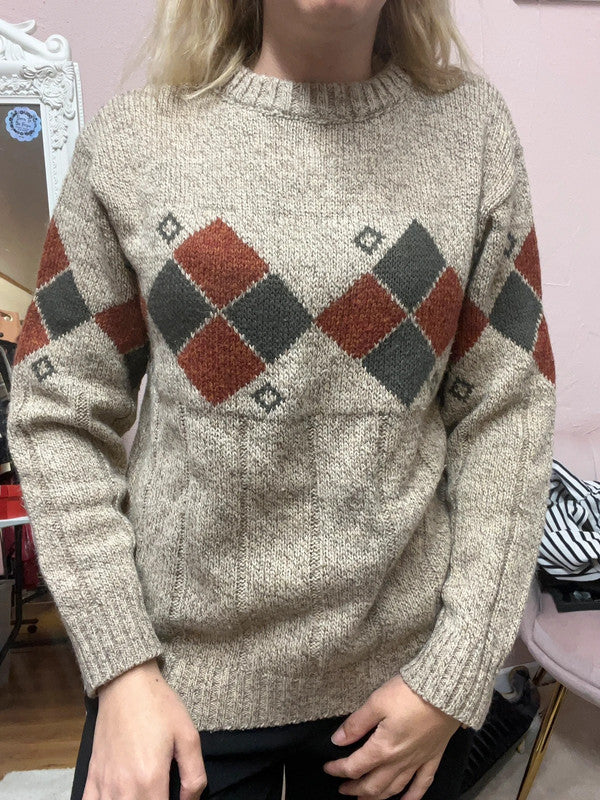 Pull Vintage en maille - Motifs losange